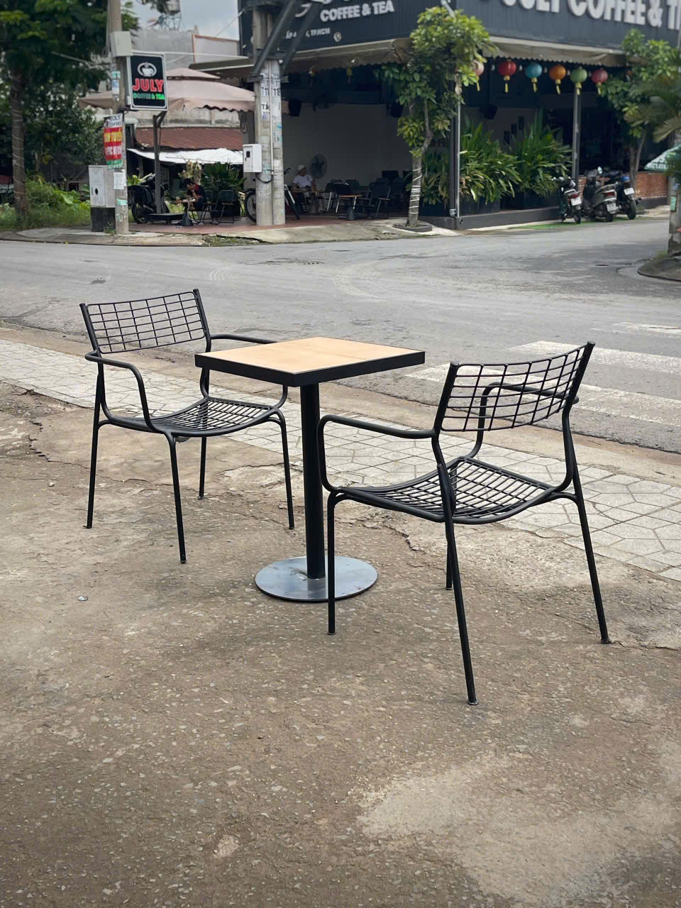 Nhựa và các vật liệu tổng hợp có ưu điểm nhẹ, dễ vệ sinh và giá thành thấp. Đây là lựa chọn phù hợp cho các mô hình quán ăn bình dân hoặc khu vực ngoài trời, nhưng về mặt thẩm mỹ thường không cao bằng gỗ hoặc kim loại.